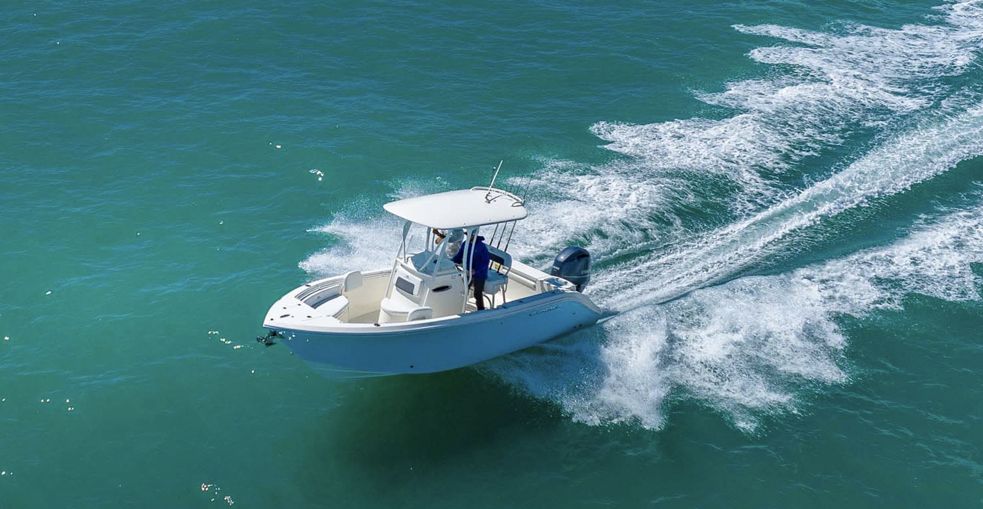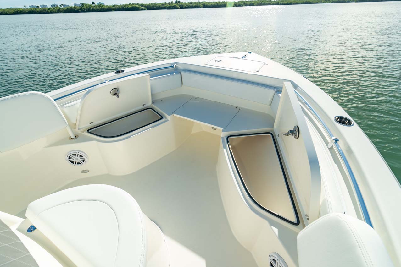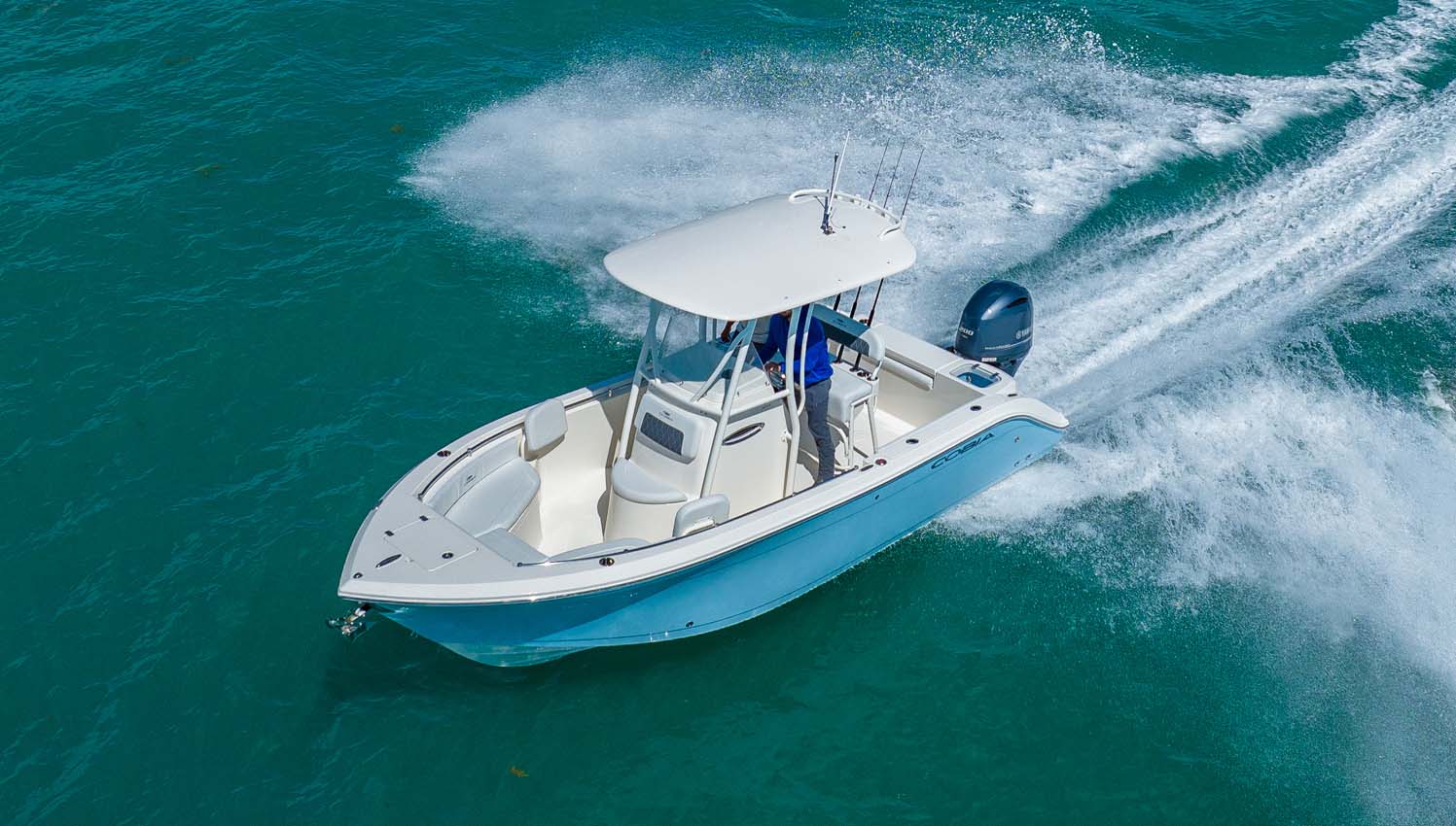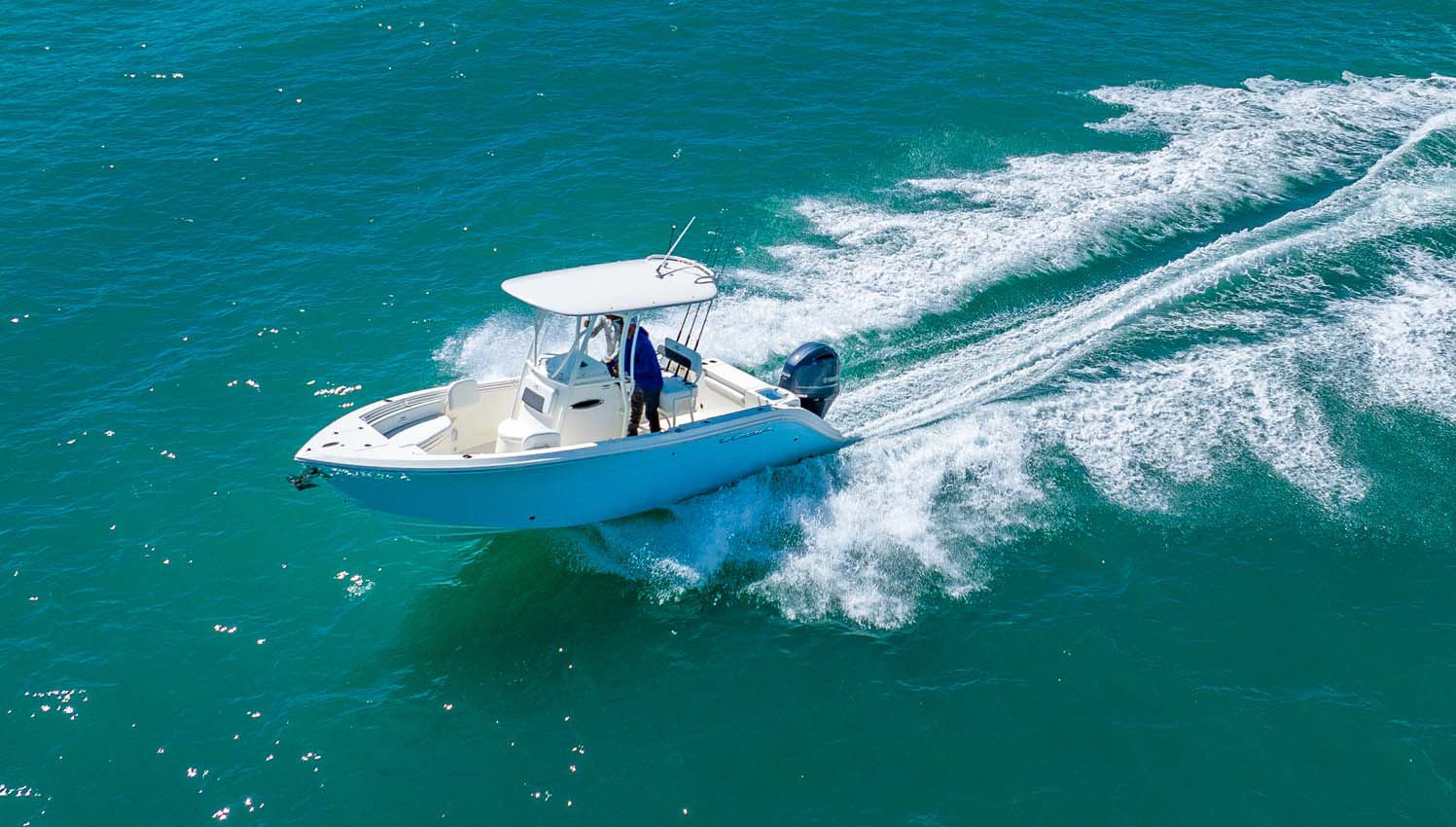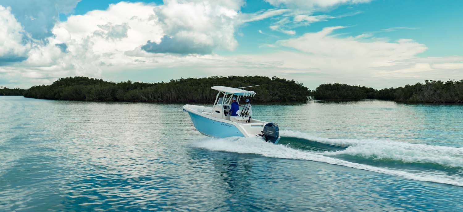 What makes the 220 CC a great center console? Maybe it’s the sharp forward entry, large bow flare and variable deadrise hull that makes it ride better than a lot of bigger boats. Or it could be the high sides and deep interior freeboard that make it feel so secure and safe even in outsized seas. Then there’s the fact that it has an insulated fishbox that drains overboard and under-gunnel rod storage, features that other boats its size can’t claim. And what about the hidden rear seat with flip-up backrest and battery storage underneath? Put it all together and the 220 CC is the most feature-rich and big water-ready 22-footer out there.