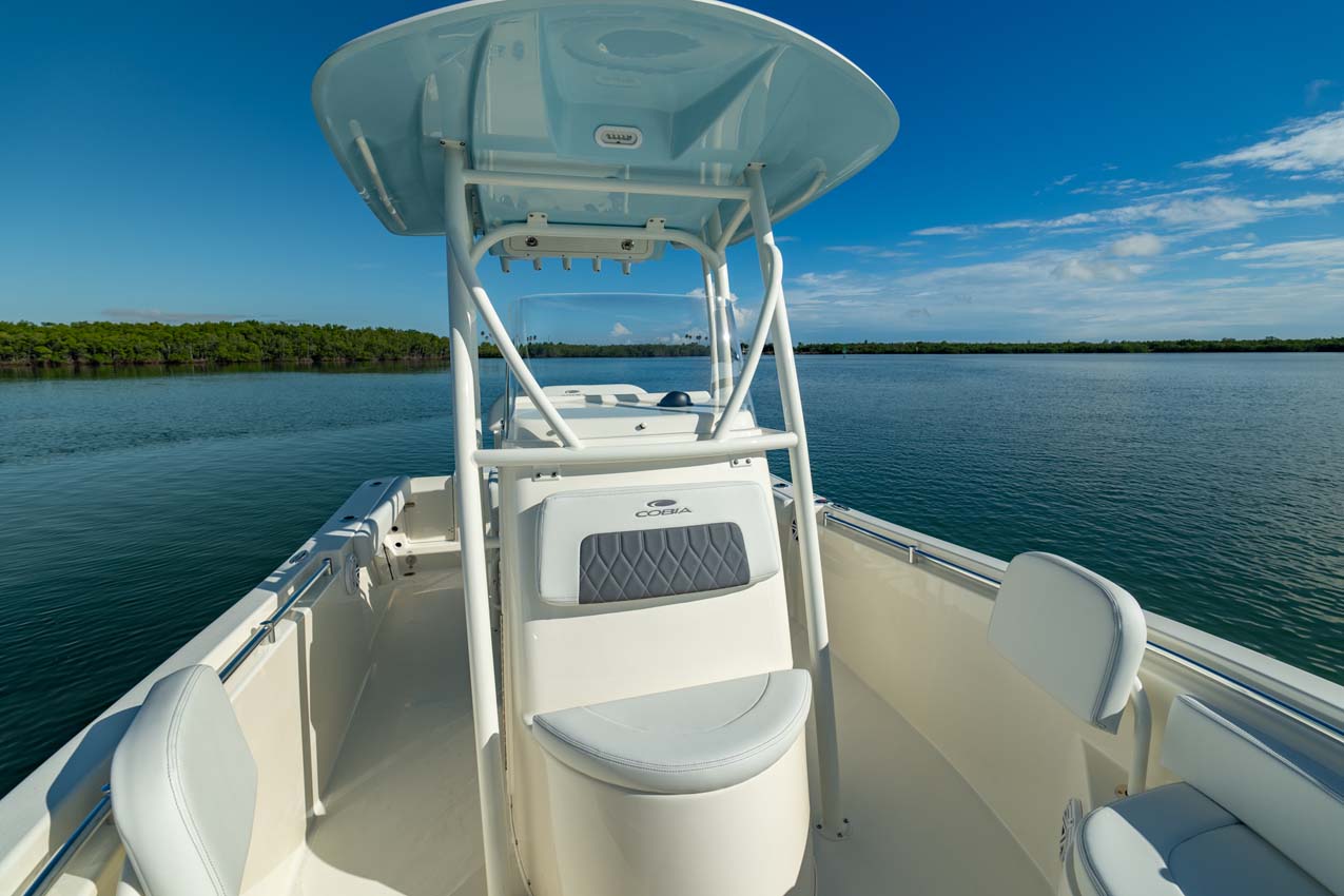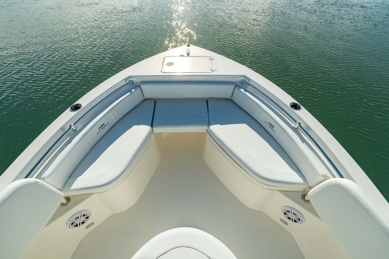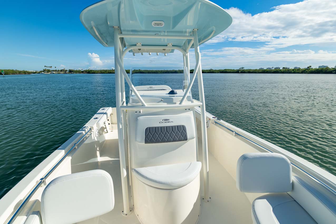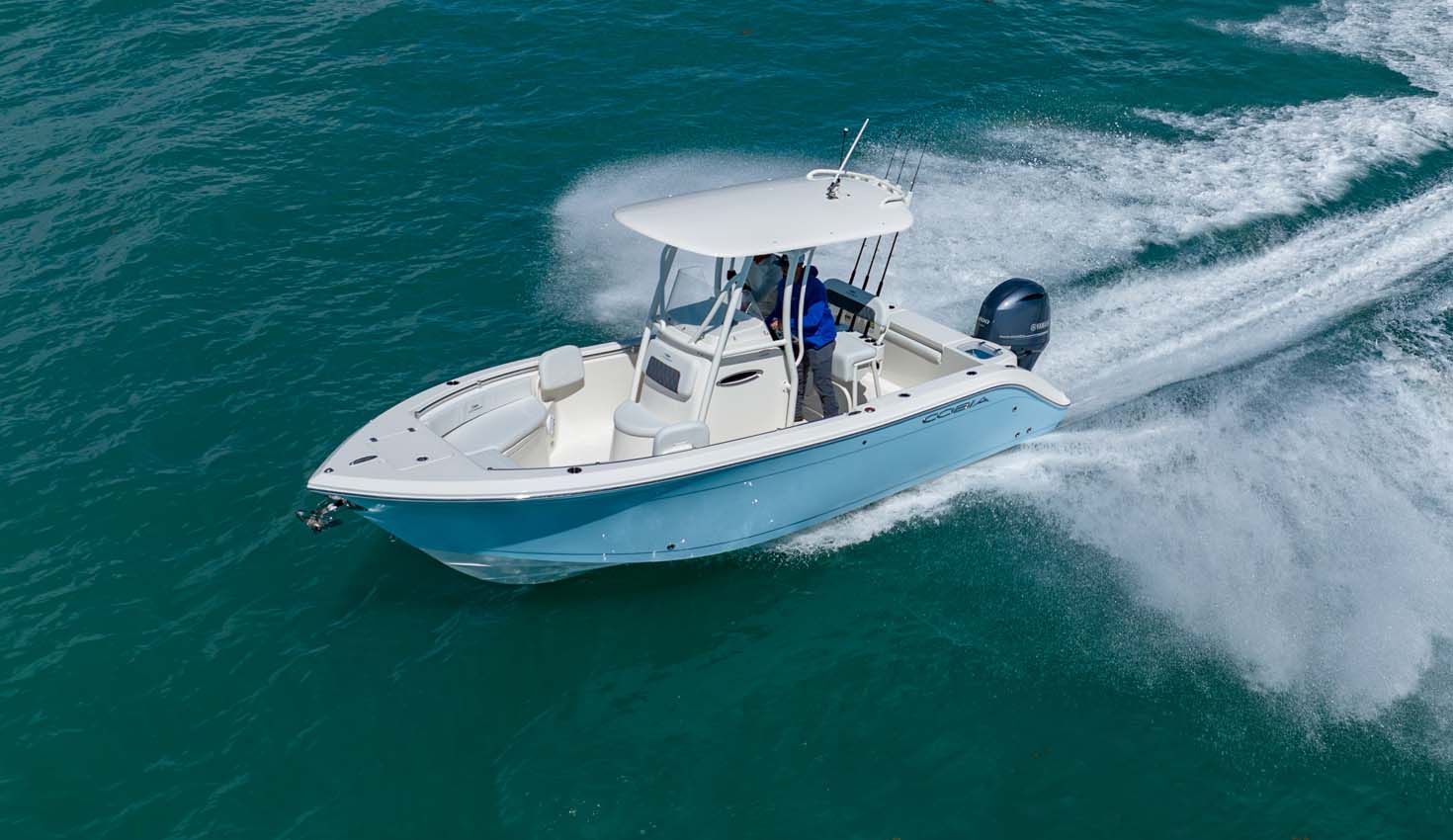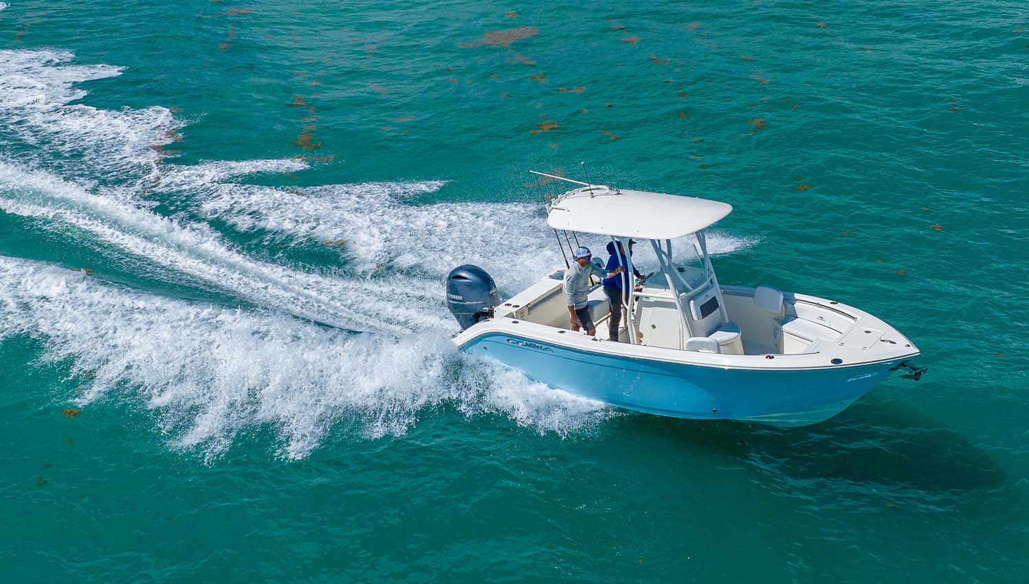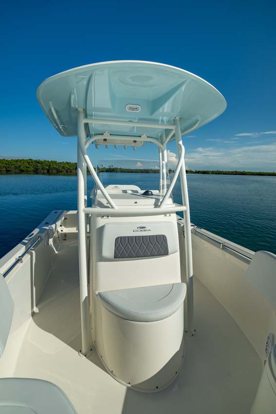 What makes the 220 CC a great center console? Maybe it’s the sharp forward entry, large bow flare and variable deadrise hull that makes it ride better than a lot of bigger boats. Or it could be the high sides and deep interior freeboard that make it feel so secure and safe even in outsized seas. Then there’s the fact that it has an insulated fishbox that drains overboard and under-gunnel rod storage, features that other boats its size can’t claim. And what about the hidden rear seat with flip-up backrest and battery storage underneath? Put it all together and the 220 CC is the most feature-rich and big water-ready 22-footer out there.