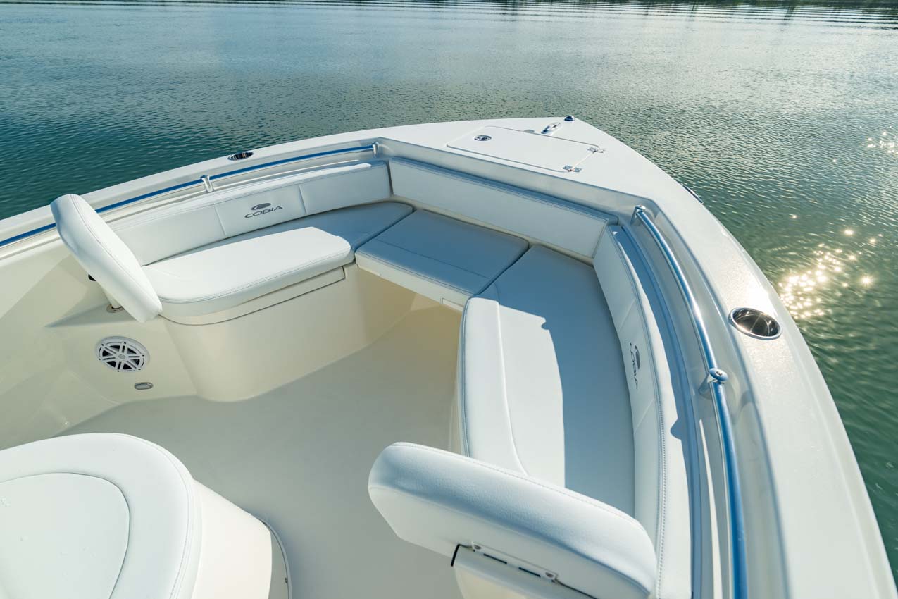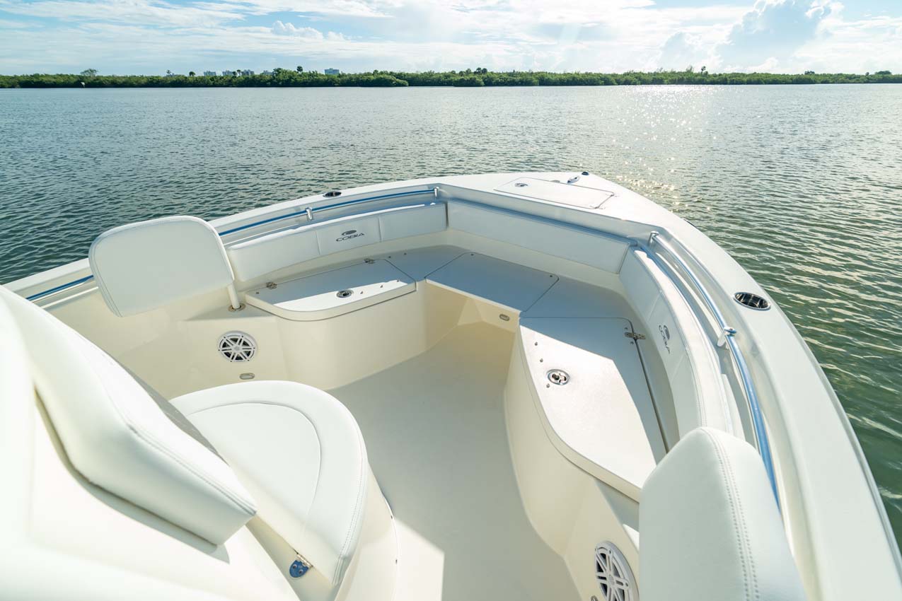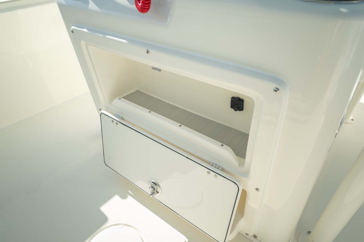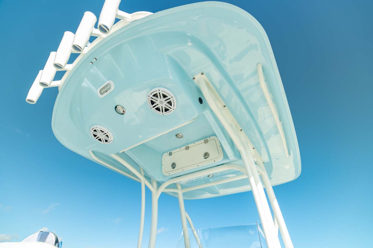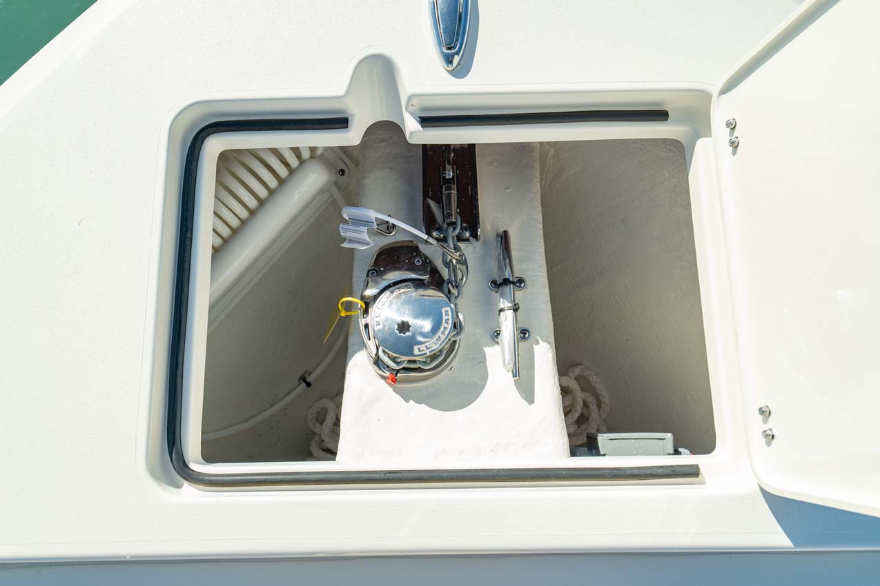 What makes the 220 CC a great center console? Maybe it’s the sharp forward entry, large bow flare and variable deadrise hull that makes it ride better than a lot of bigger boats. Or it could be the high sides and deep interior freeboard that make it feel so secure and safe even in outsized seas. Then there’s the fact that it has an insulated fishbox that drains overboard and under-gunnel rod storage, features that other boats its size can’t claim. And what about the hidden rear seat with flip-up backrest and battery storage underneath? Put it all together and the 220 CC is the most feature-rich and big water-ready 22-footer out there.