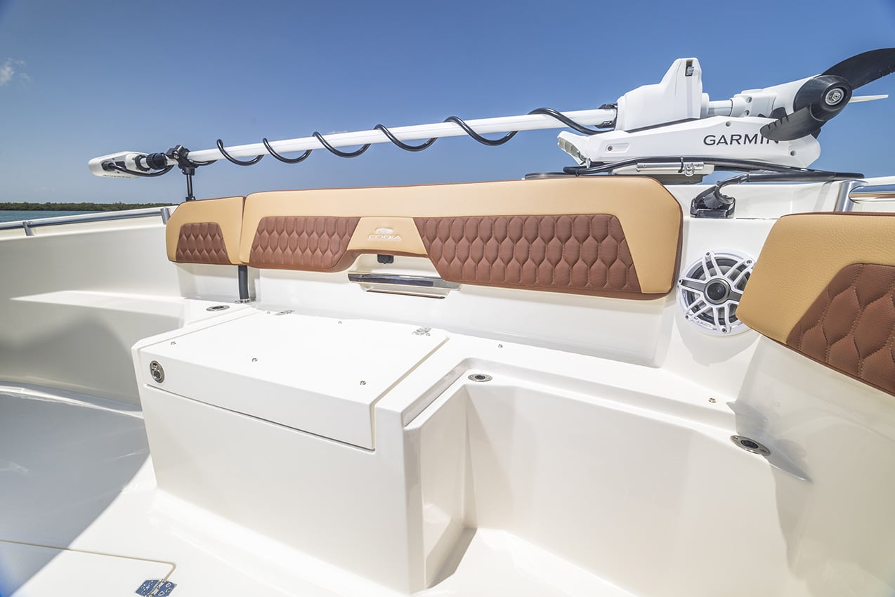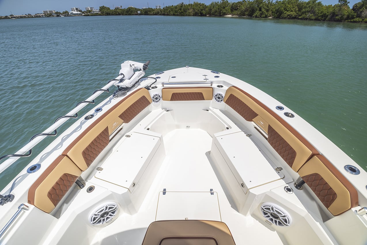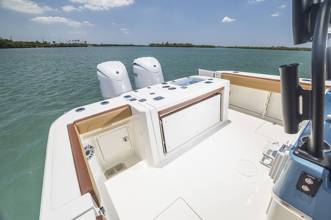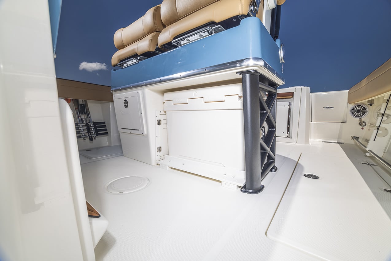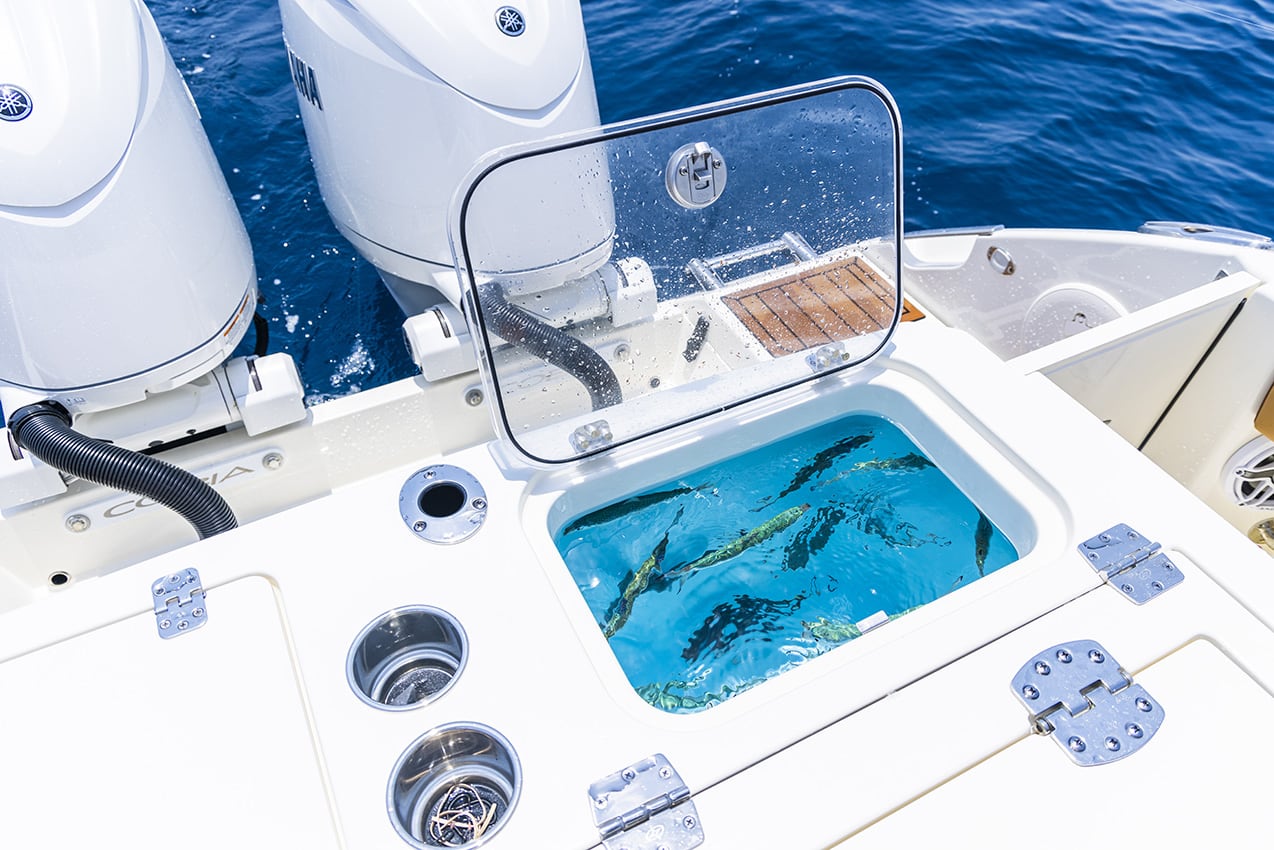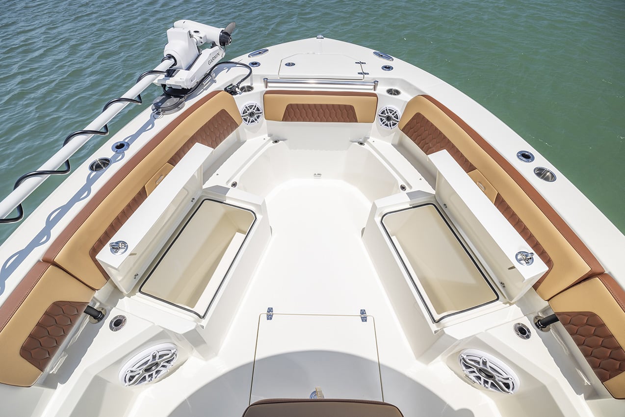 An enhanced angler-friendly layout, smartly designed tackle stations, a 30-gallon livewell and two cockpit insulated 46-gallon fish boxes plus plenty of storage all make for a great day of fishing.