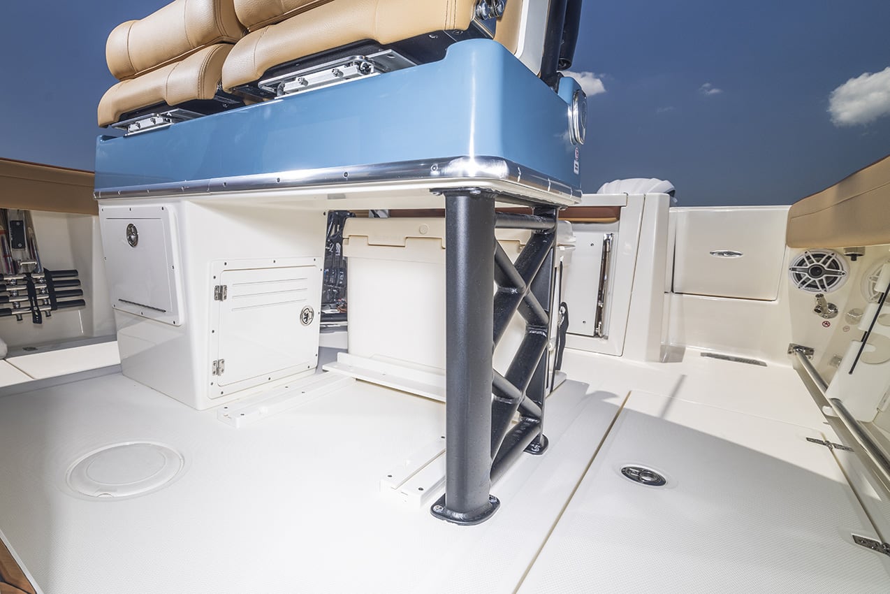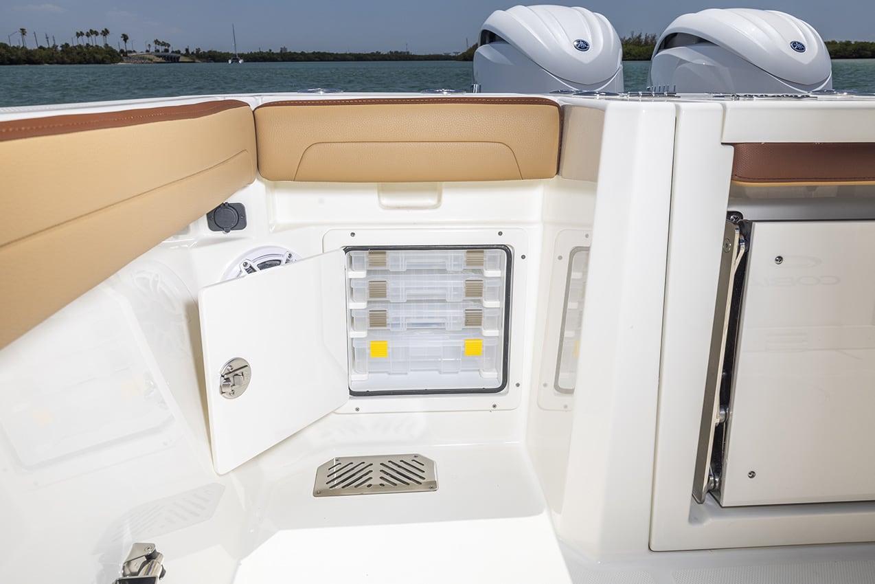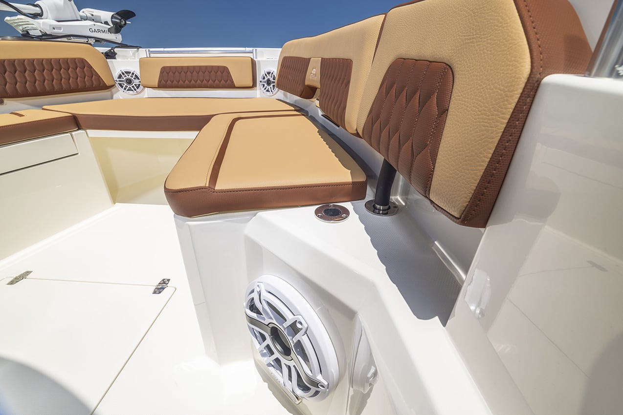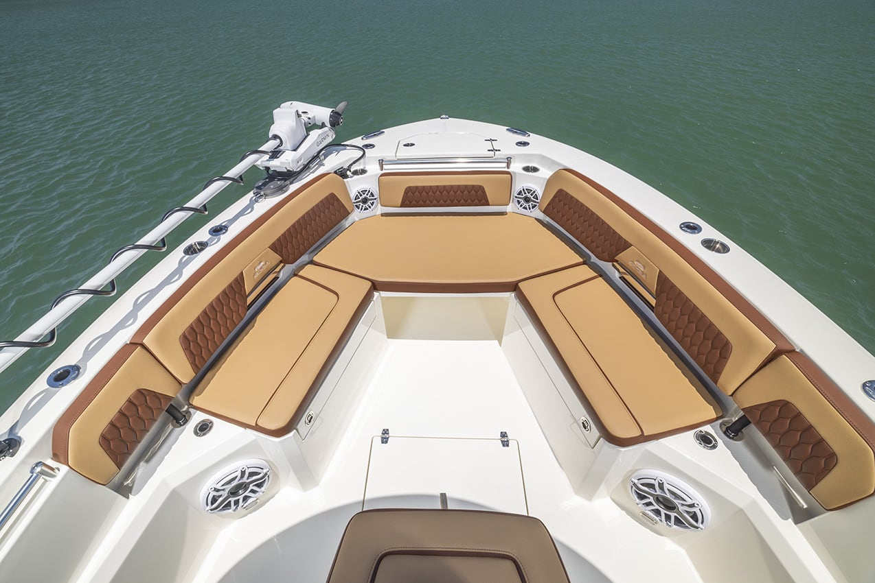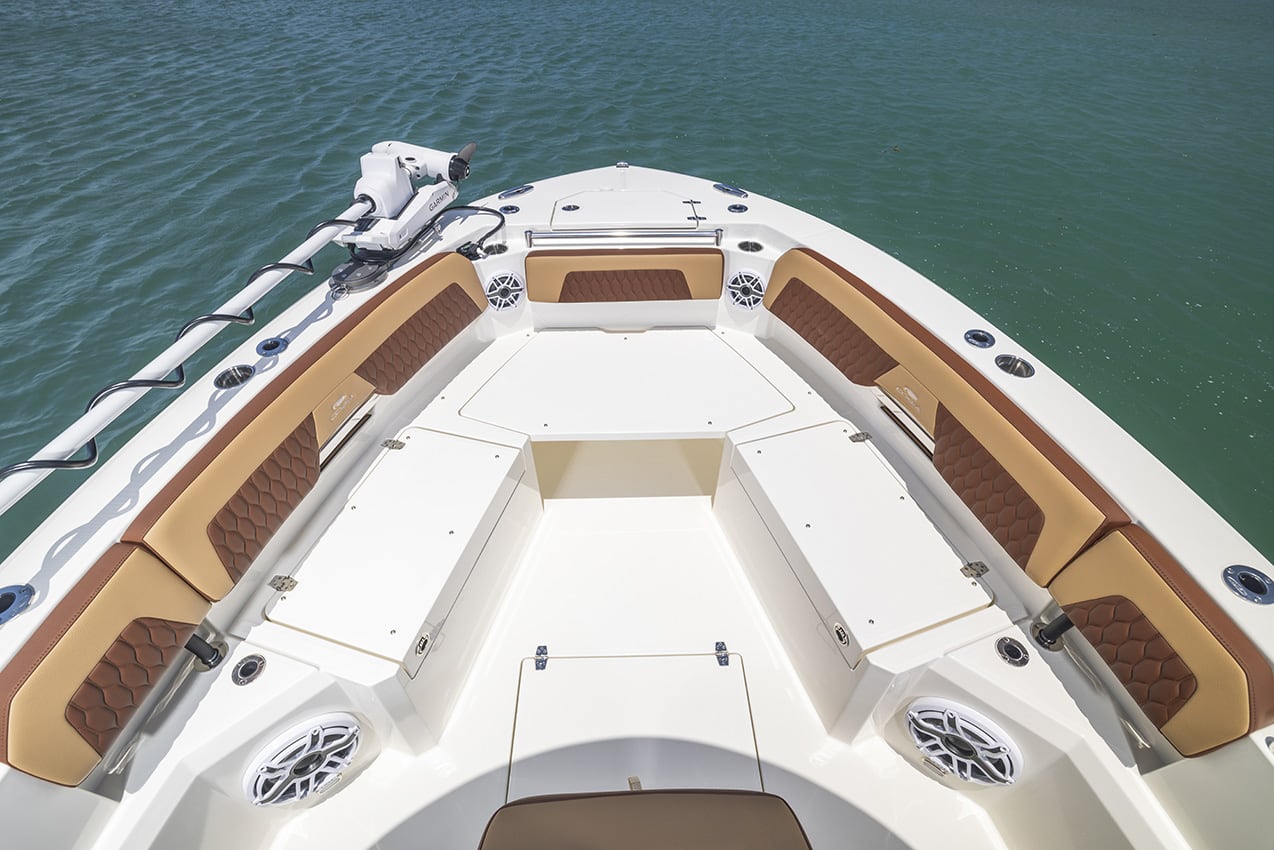 An enhanced angler-friendly layout, smartly designed tackle stations, a 30-gallon livewell and two cockpit insulated 46-gallon fish boxes plus plenty of storage all make for a great day of fishing.