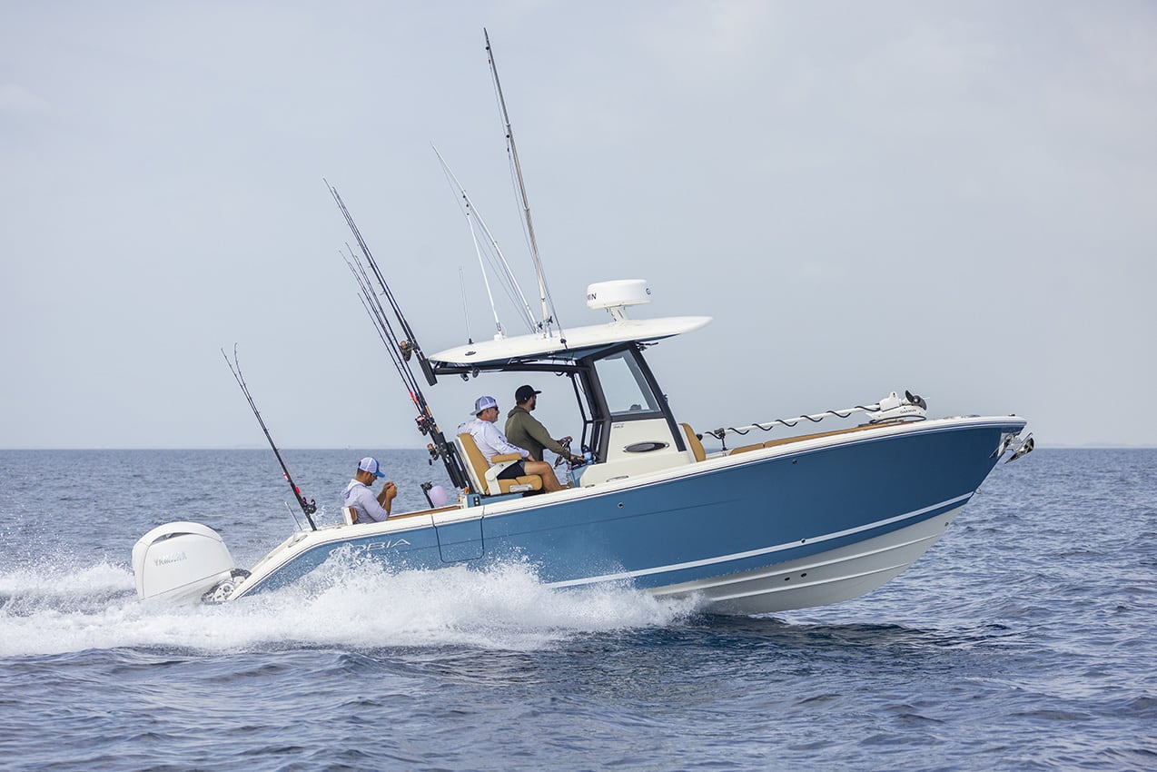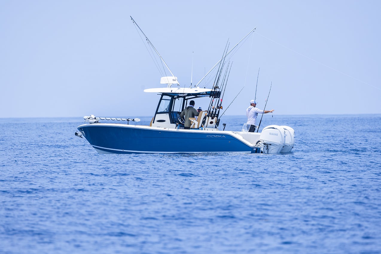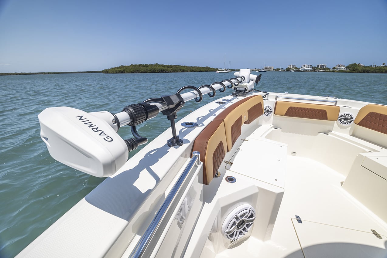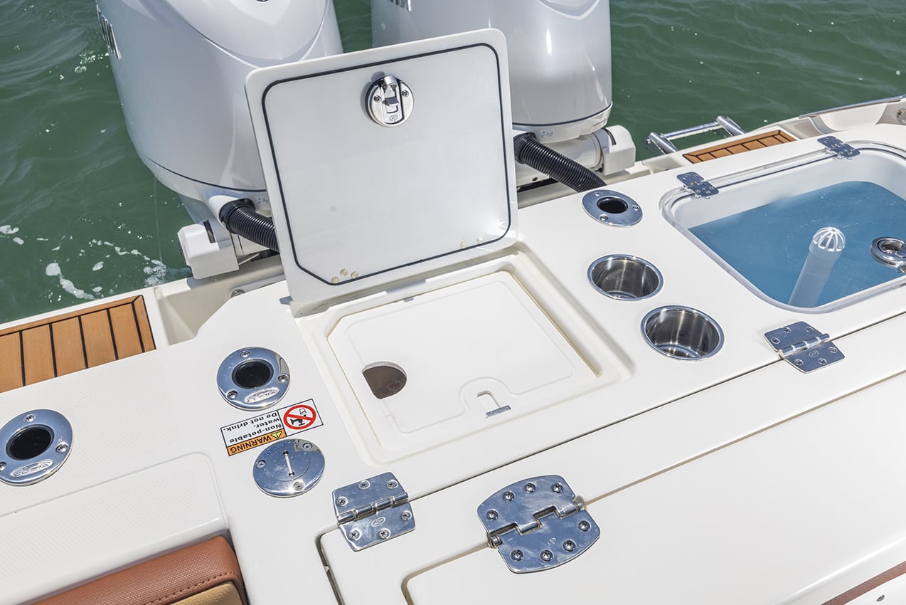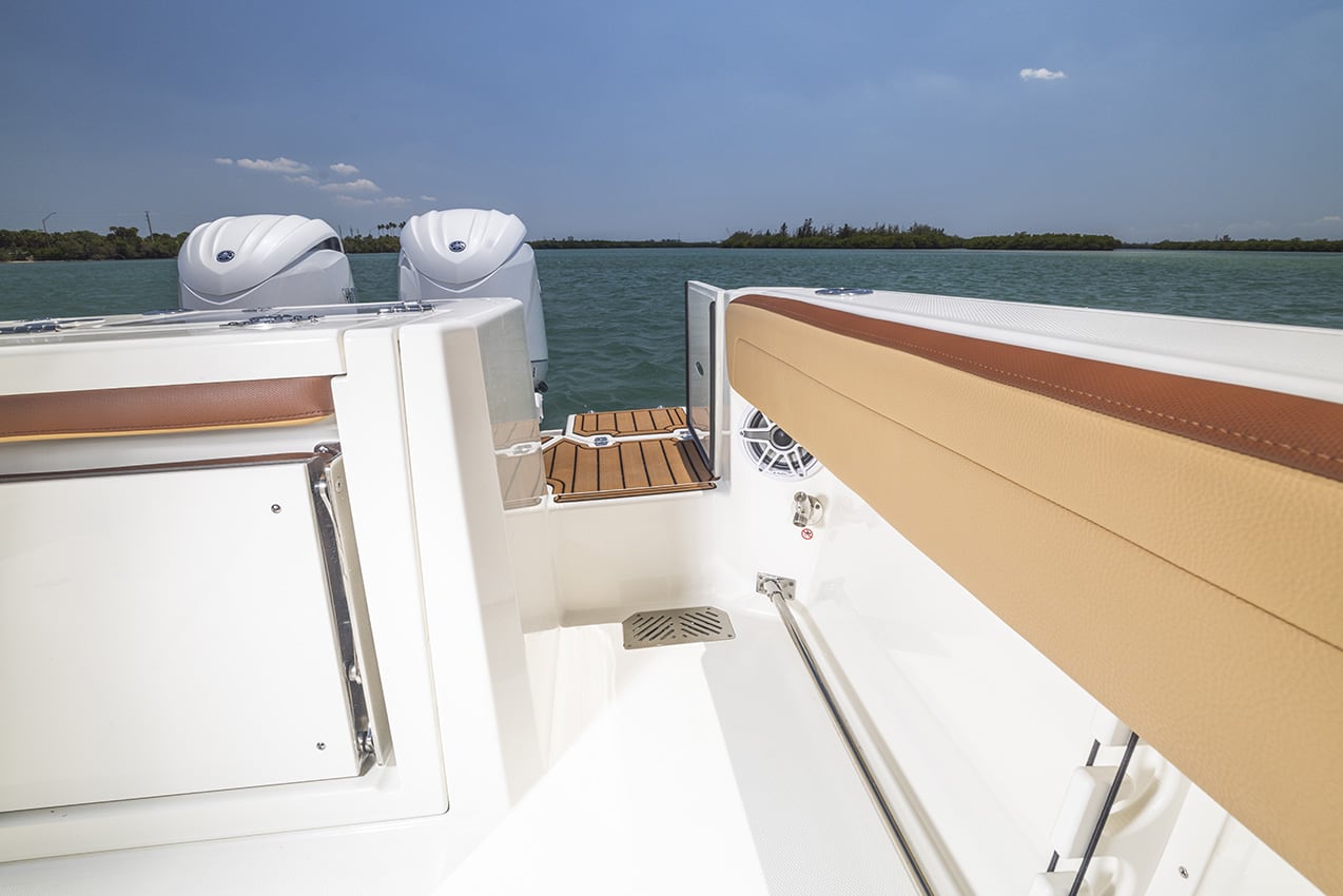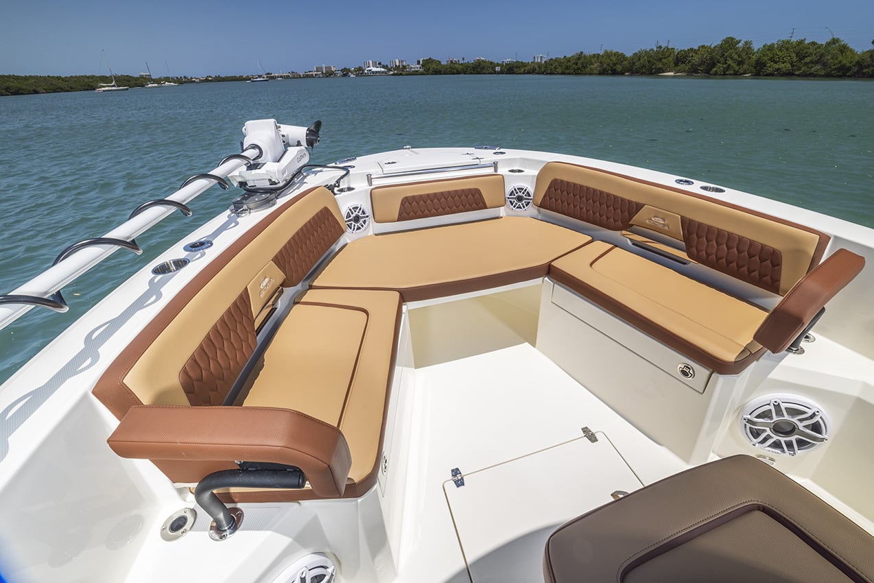 An enhanced angler-friendly layout, smartly designed tackle stations, a 30-gallon livewell and two cockpit insulated 46-gallon fish boxes plus plenty of storage all make for a great day of fishing.