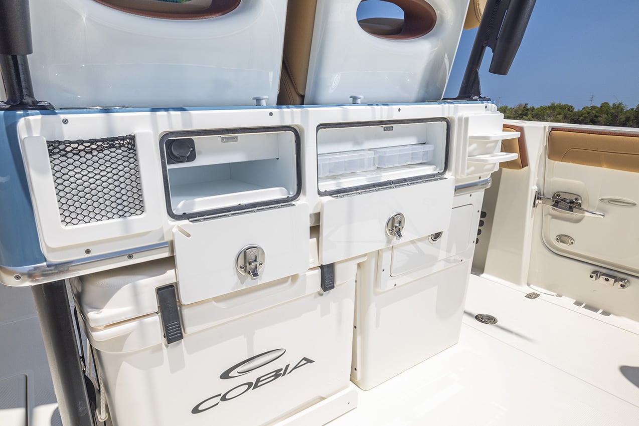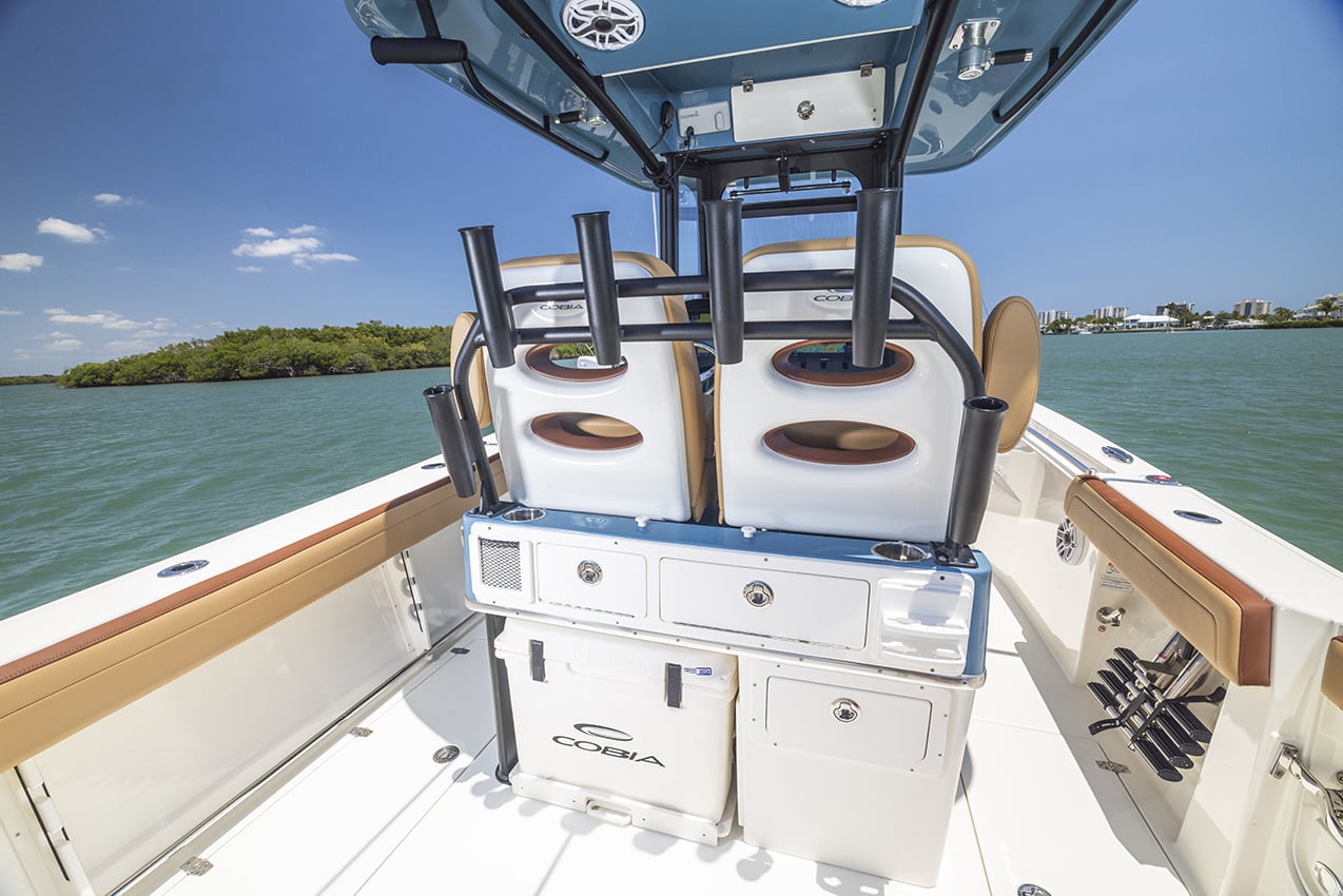 But the 265 CC Open is more fishing focused with a layout that’s designed to give you more room for the crew and all your gear. The most noticeable difference is the increased open area fore and aft for full walk-up access to the bow and stern. Multiple helm seat station configurations allow you to pick your favorite. A forward console jump seat provides a place to relax when you need it and tucks out of the way when you don’t. Choose the added deep drop set up with electric reel outlets to give you more ways to bring home dinner. Overall, the extra deck space, fishing-focused features and Cobia-level comfort are how anglers have it all.