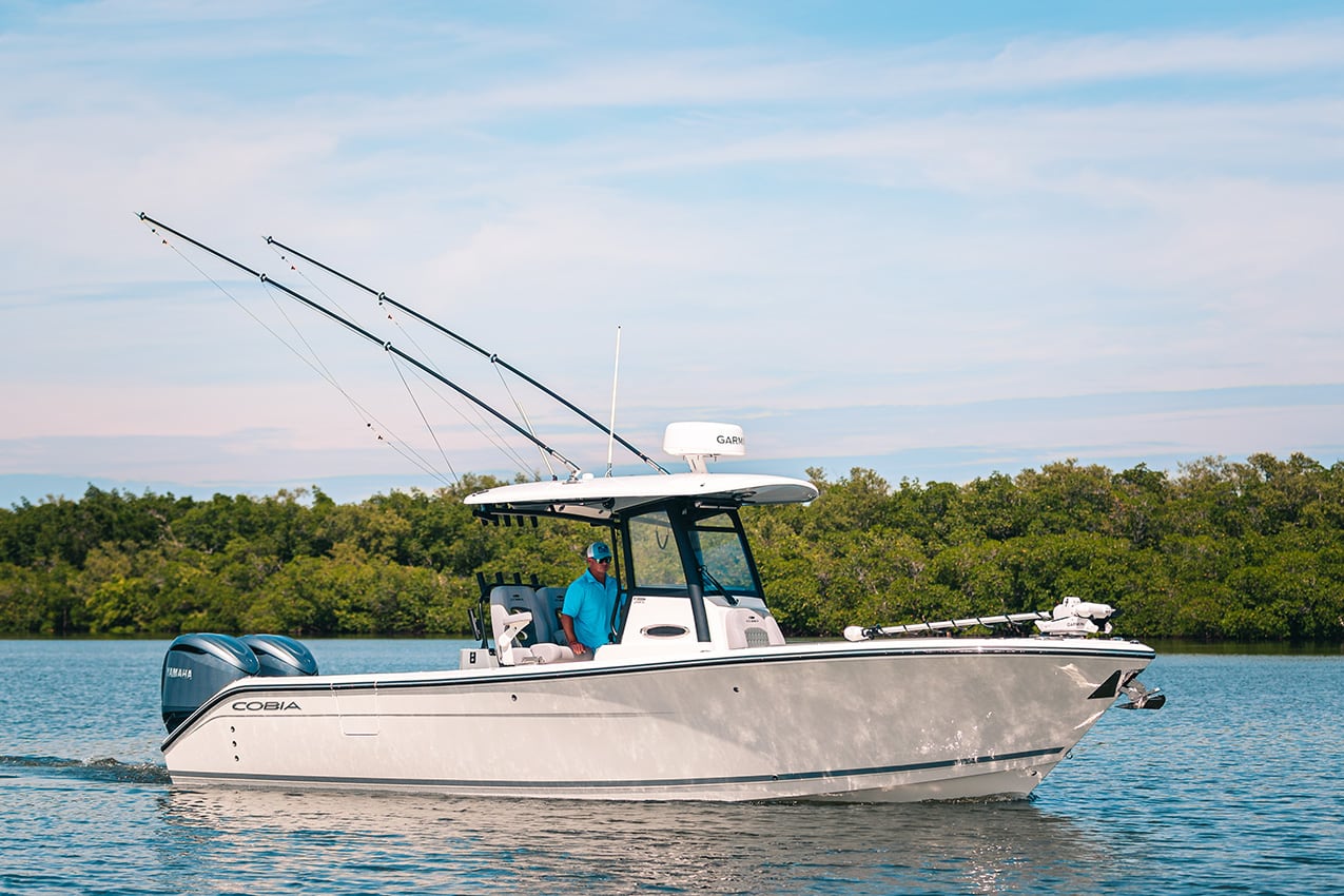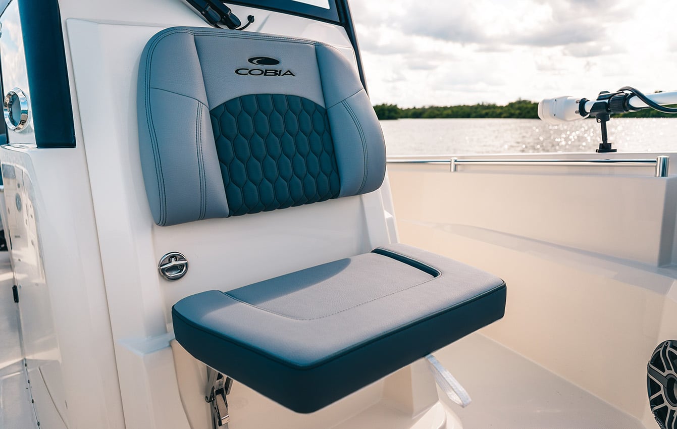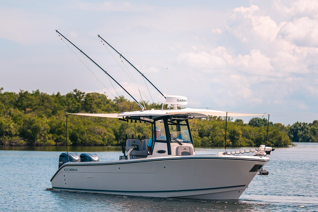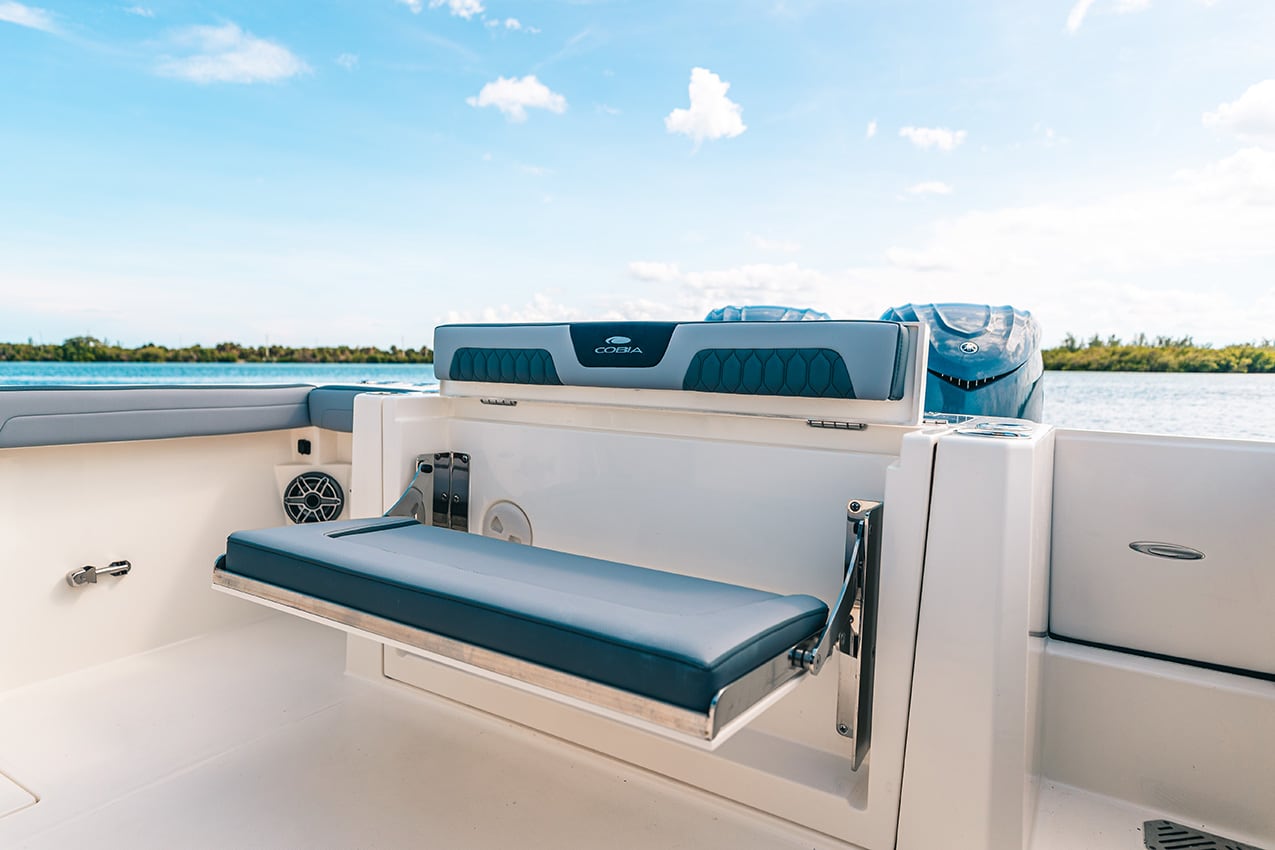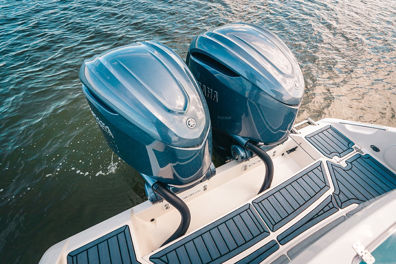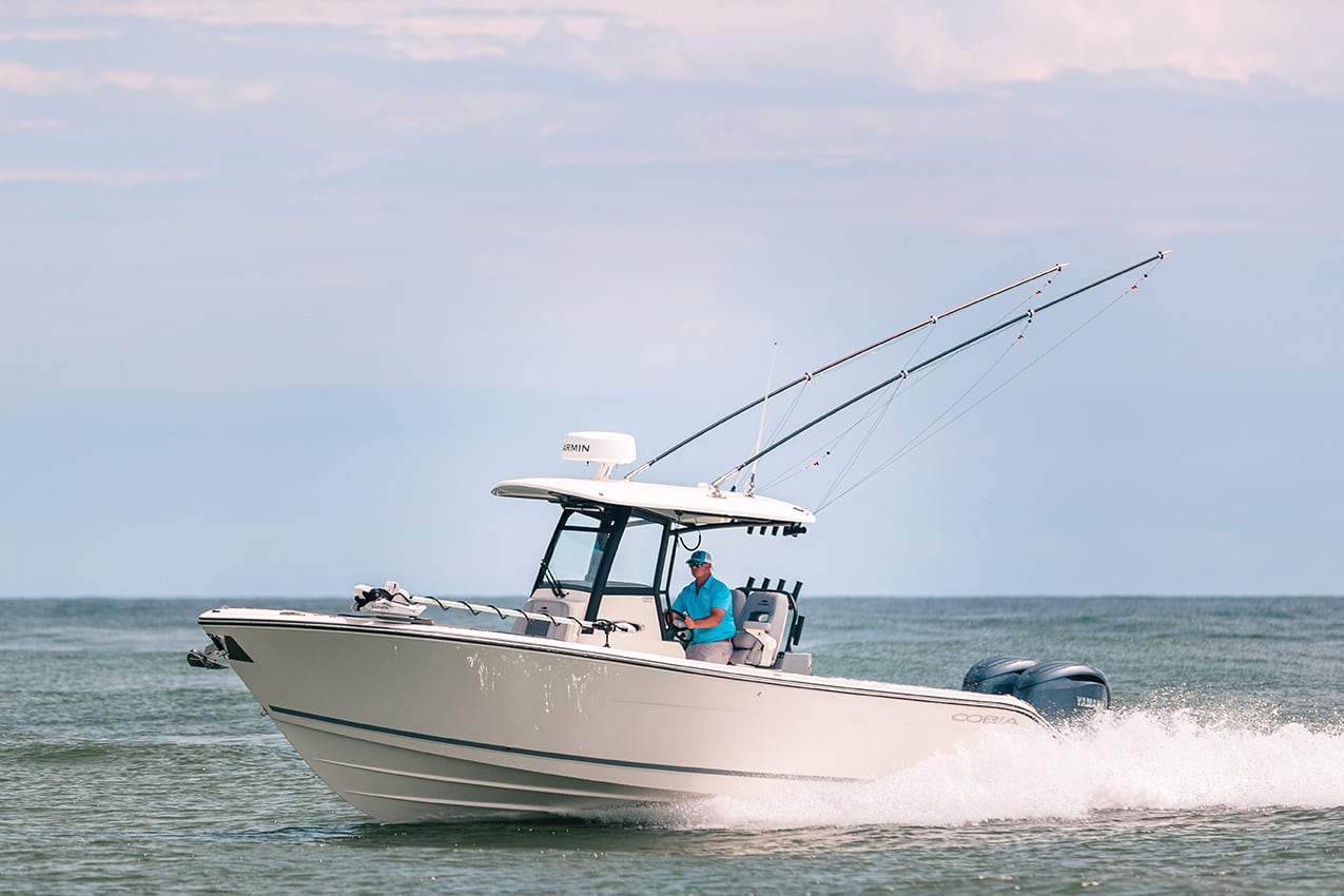With an LOA of 28’ 5”, a beam of 9’ 11” and versatile seating options, you’ll have plenty of room for all your crew. Get to your favorite spot faster and fish all day with multiple twin engine options – up to 700 maximum horsepower. The helm can accommodate dual 16” Garmin screens, so navigating is second nature. The premium helm seat with tackle center and cooler with slide is standard on the Open or opt in for a version that includes space for more tackle, prep or an added Seakeeper 1.
