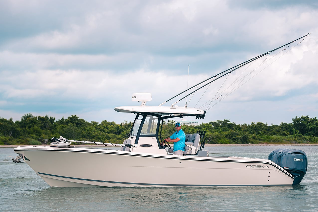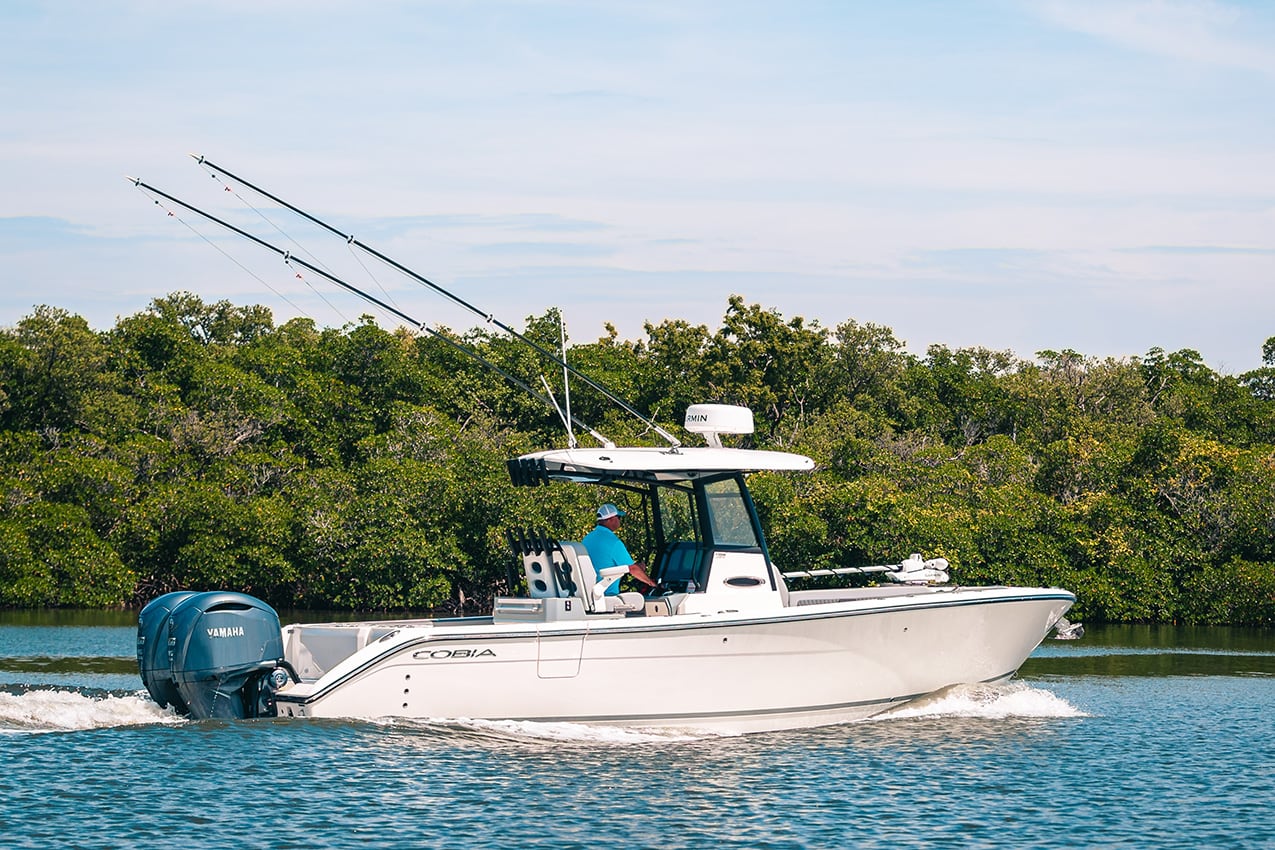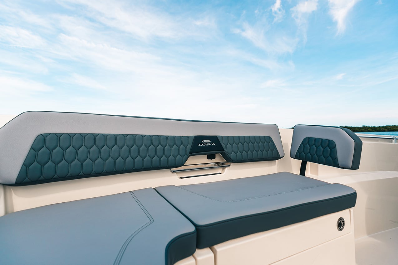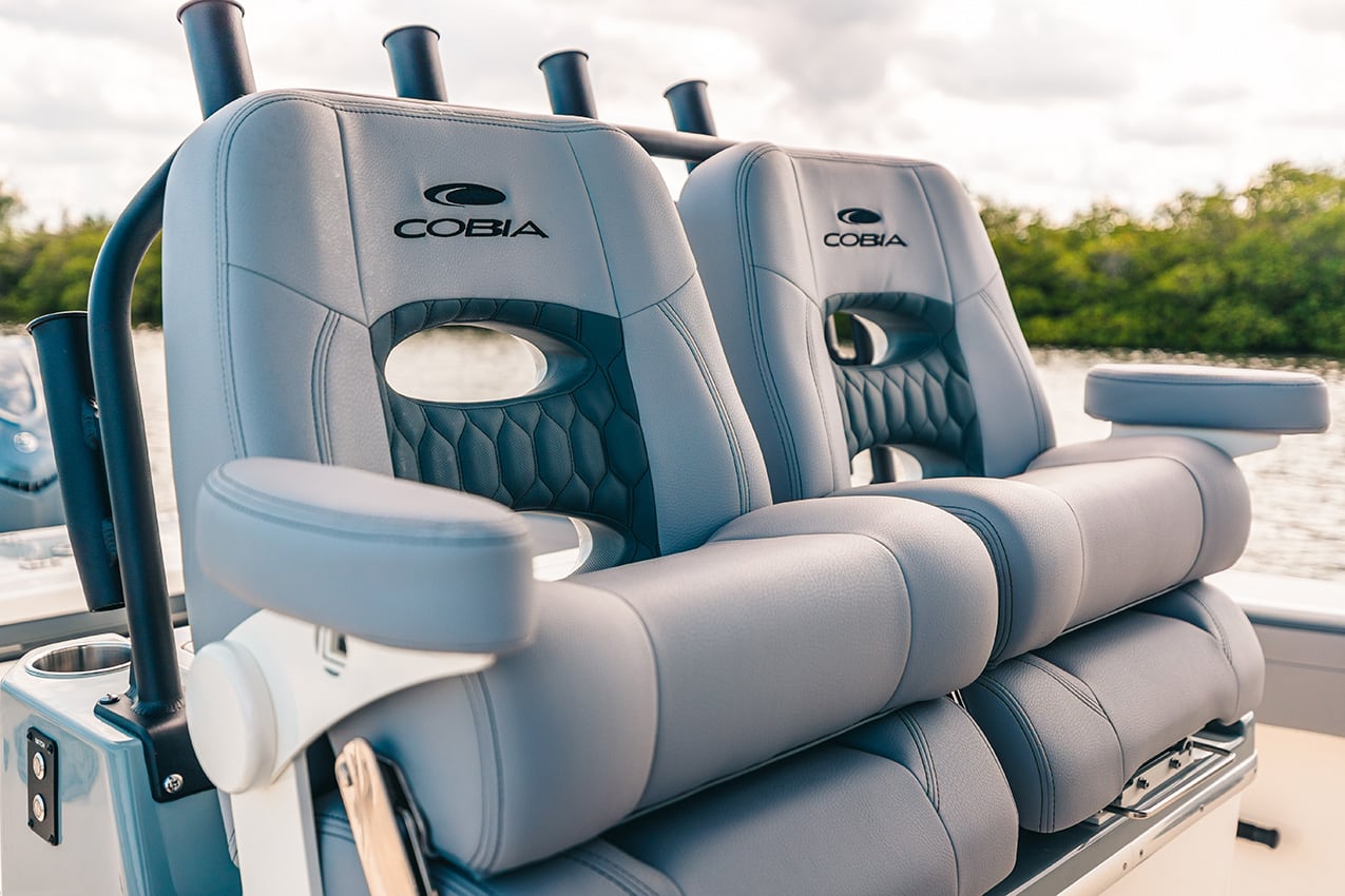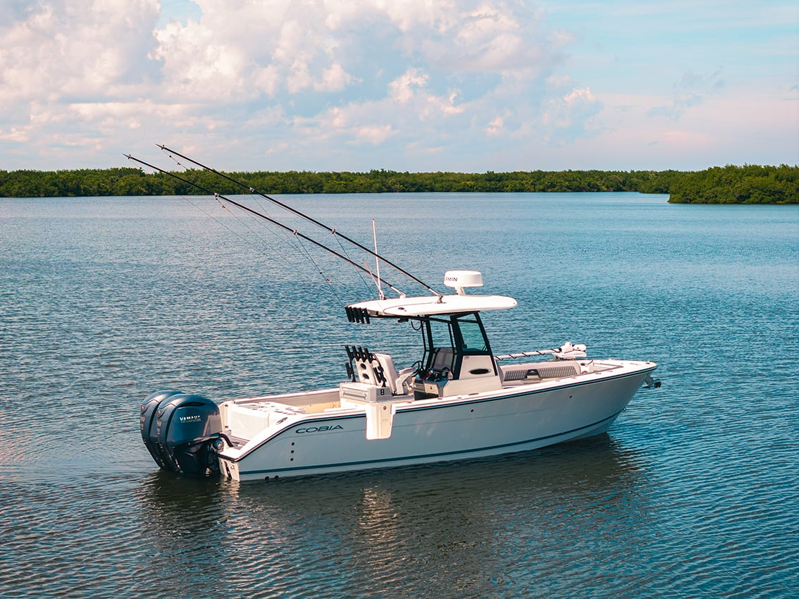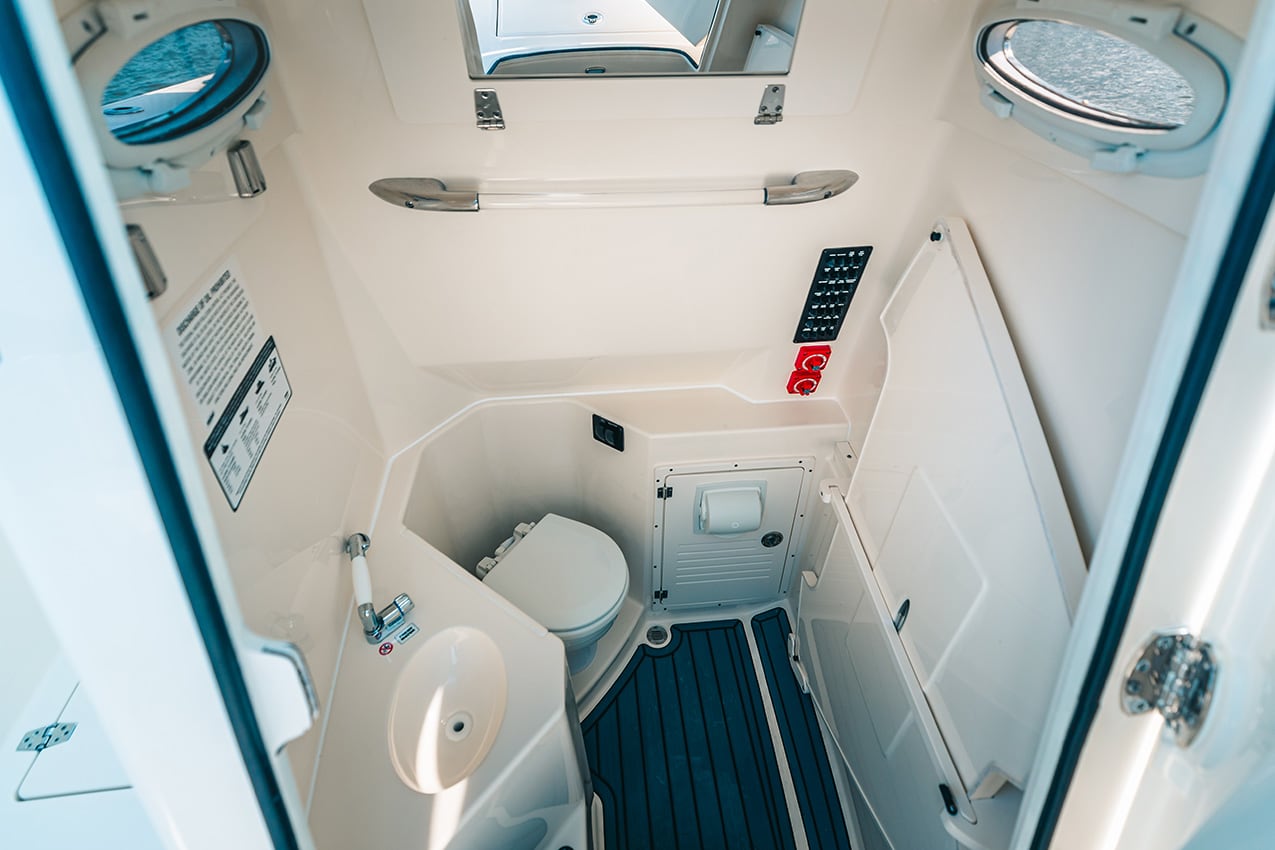 With an LOA of 28’ 5”, a beam of 9’ 11” and versatile seating options, you’ll have plenty of room for all your crew. Get to your favorite spot faster and fish all day with multiple twin engine options – up to 700 maximum horsepower. The helm can accommodate dual 16” Garmin screens, so navigating is second nature. The premium helm seat with tackle center and cooler with slide is standard on the Open or opt in for a version that includes space for more tackle, prep or an added Seakeeper 1.