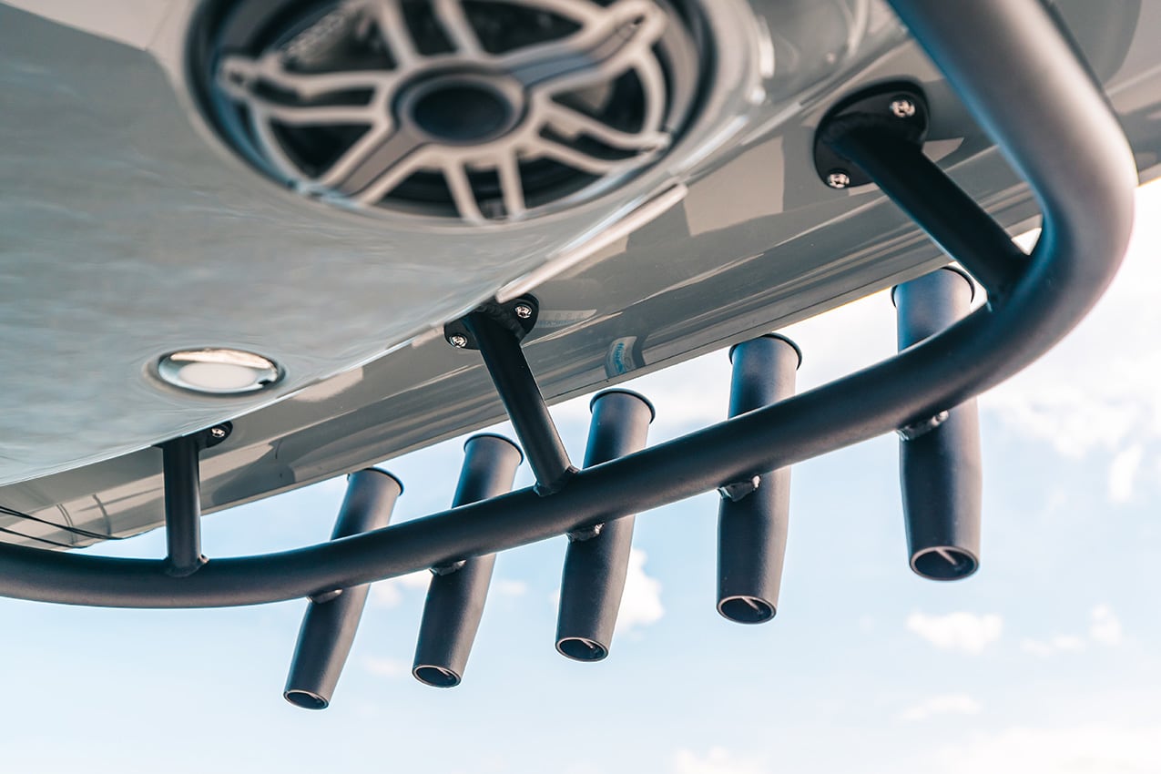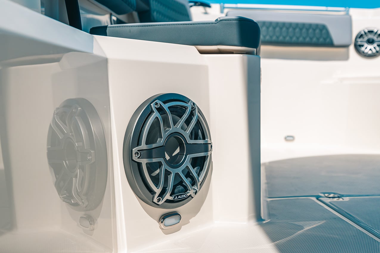 Additional upgrades include a Garmin Force Kraken trolling motor and enhanced JL Audio sound system packages with 10” subwoofers and up to 10 speakers that are strategically positioned to optimize the sound no matter where you are sitting, standing or fishing from on the boat.