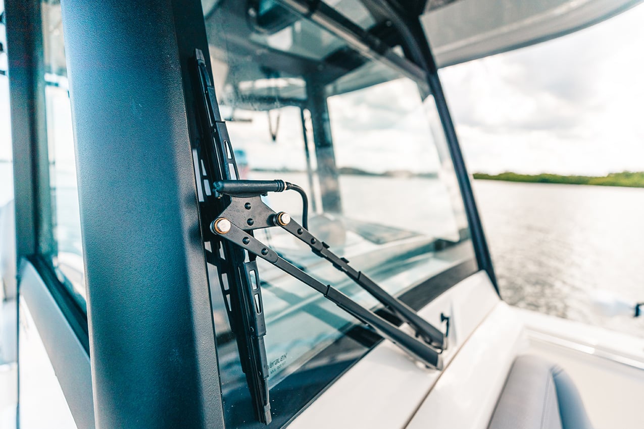 Integrated hardtop frame with tempered glass enclosure and wiper offers superior visibility and protection from the elements while the vent provides airflow at the flip of a switch.