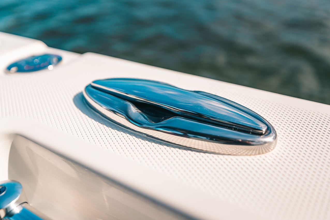 The side tuna door was designed with fishing and family in mind. Perfect for whether you are hauling in that big catch, using the ladder or reaching into the cooler for a cold drink without having to board the boat.