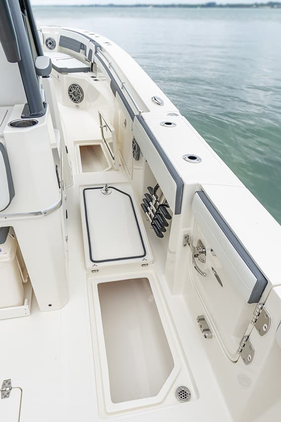 Dual insulated stern livewells let you carry multiple types of bait or store frozen rigging setups for quick action when the bite is on. Or they can double as an extra cooler when needed.