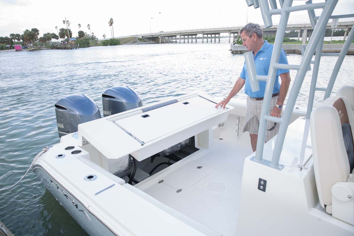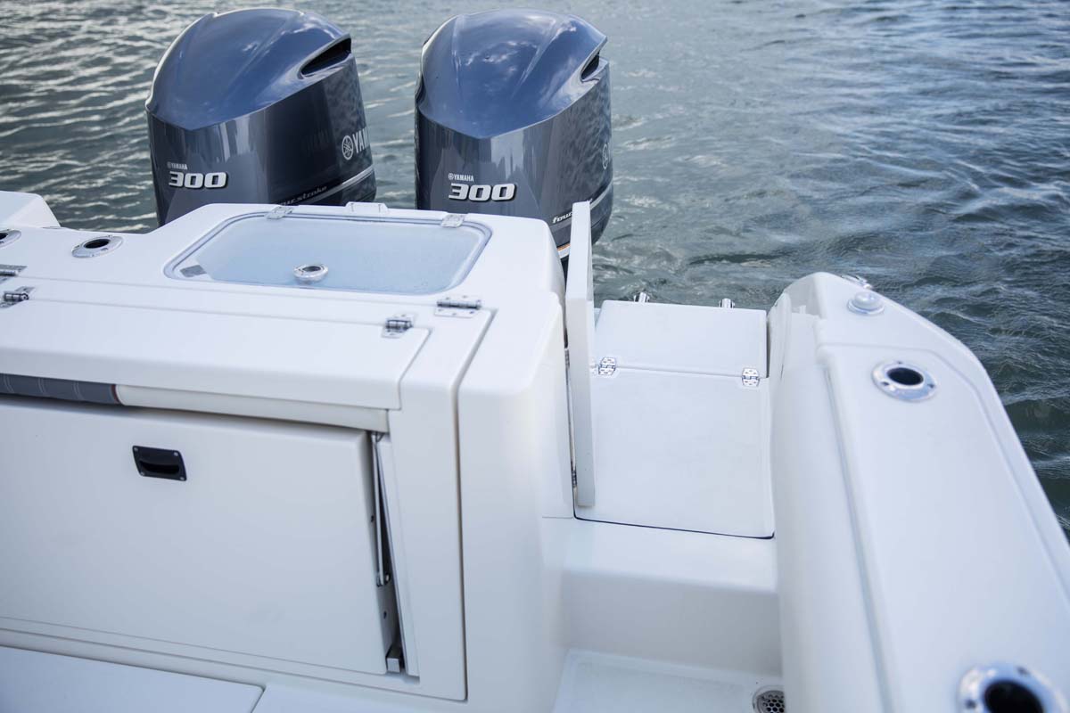 The 320 CC is a spacious, big water hull capable of long-range trips that can still be comfortably trailered. Designed for the discerning family fisherman, this center console blends a tournament-ready layout with the elegance, comfort and style of a cruiser. Serious anglers will appreciate the large unobstructed cockpit, a tackle center with sink and bait prep area big enough for all your terminal tackle and baits, under-gunnel rod storage, macerated in-deck fishboxes and twin pressurized livewells that combine for a 70-gallon capacity.